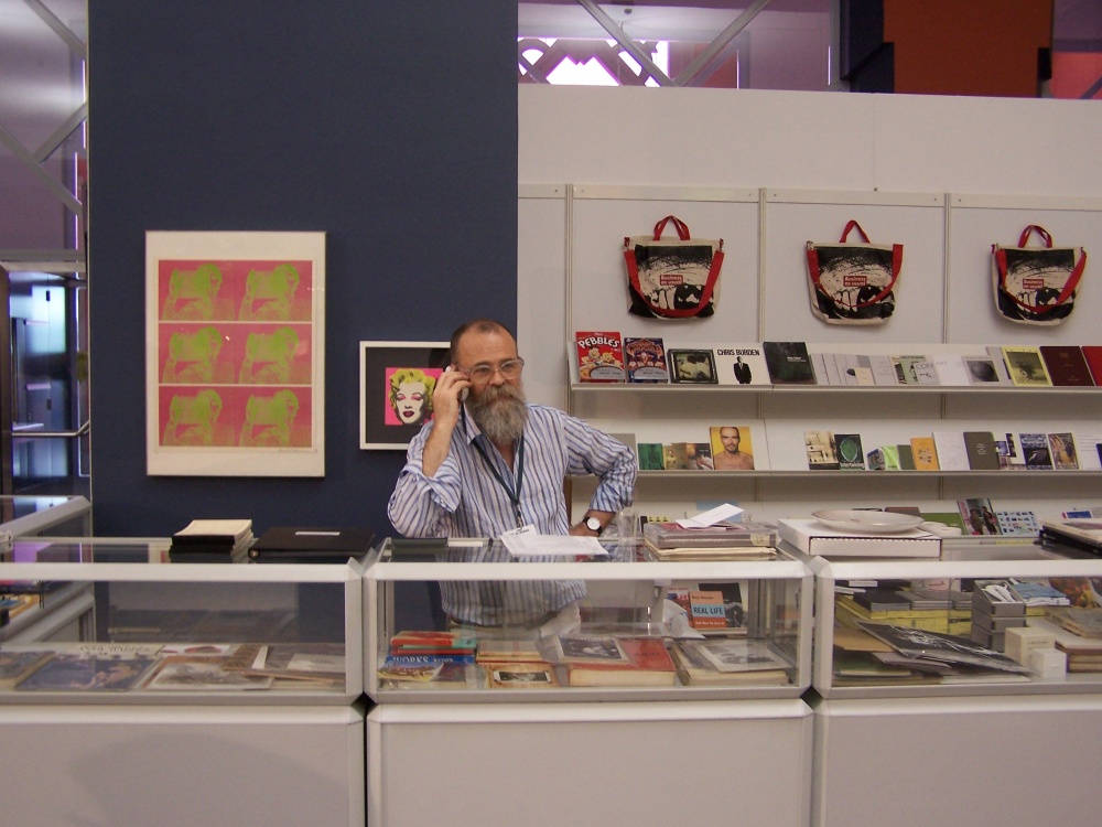 6: AA Bronson, all business at the collaborative booth between Art Met and Printed Matter Inc.