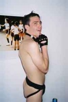 4: Andrew poses for Matthias, while waiting for a little more business at the bar. By the end of the evening, his jock strap was packed with loonies.