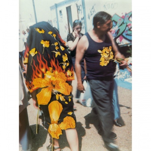In Hackney Flowers, Stephen Gill has again used his east London surroundings as the inspiration for his work. This time he has collected flowers, seeds, berries and other objects from various locations in Hackney, pressed them in his studio and photographed them alongside his own photographs and found ephemera. Some of the base photographs were also buried in Hackney Wick, and the consequent staining and decay has left its imprint upon the images, stressing the collaboration with place. A parallel series within the book shows members of the Hackney public with floral details imposed upon their person.